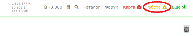 1. Кликнуть на иконку с надписью "Работа", в маленьких экранах отображается только иконка (золотой мешок со знаком "$").