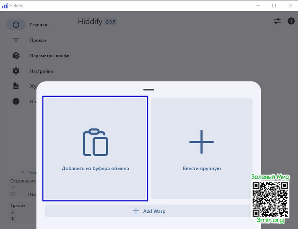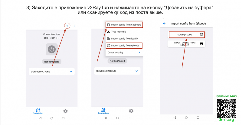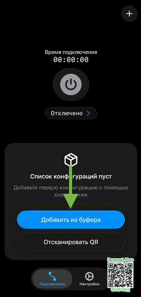 3) Заходите в приложение v2RayTun и нажимаете на кнопку "Добавить из буфера" или сканируете qr код из поста выше.