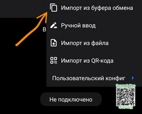 3) Открываете приложение v2RayTun и нажимаете на кнопку «Импорт из буфера обмена», ключ вставится автоматически