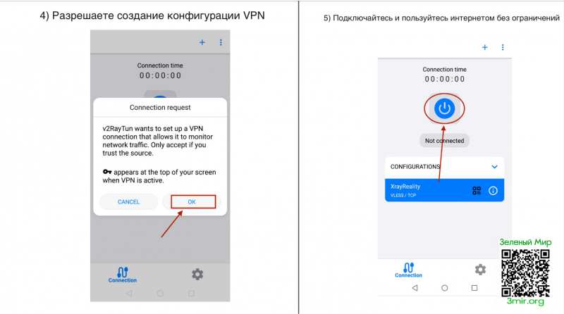 3) Заходите в приложение v2RayTun и нажимаете на кнопку "Добавить из буфера" или сканируете qr код из поста выше и разрешаете вставку.