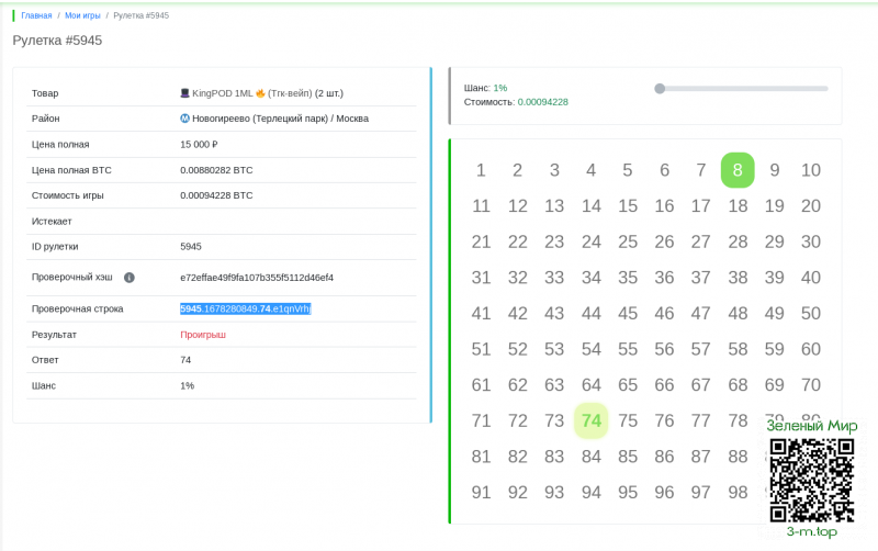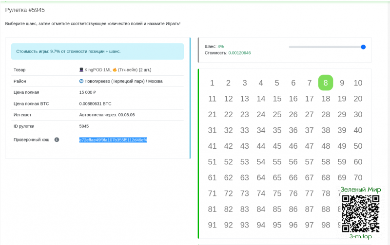 Привет! А какой курс игры в рулетку? На гидре (заранее извиняюсь, если нельзя произносить имя хоть и мертвых, но конкурентов - отредактируйте сообщение если нельзя, пжл) было все просто: цена товара с витрины делится на 100, одна фишка - это 1/100 цены. То есть на позицию за 3000 рублей я закидывал 300 рублей и получал 10 фишек.