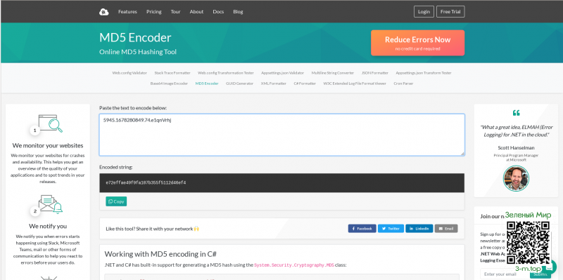 Вставляем в md5-энкодер https://elmah.io/tools/md5-encoder/